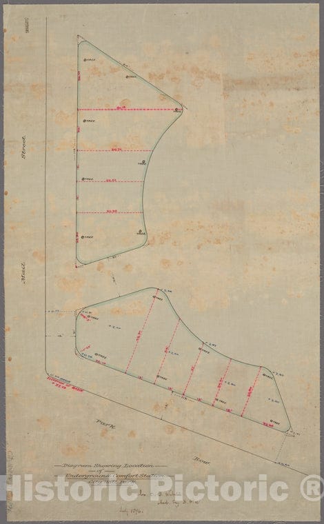• .Historic 1896 Map - Diagram Showing Location Of Underground Comfort Station, City Hall Park.Of New York City And State - Manhattan - Vintage Wall Art