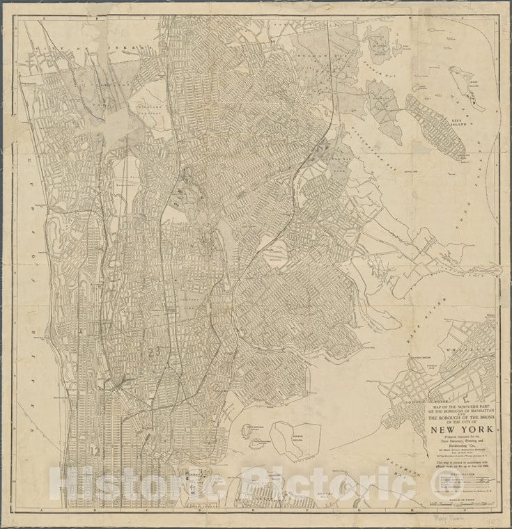 Historic 1907 Map - Map Of The Northern Part Of The Borough Of Manhattan And The Borof New York City And State - Bronx