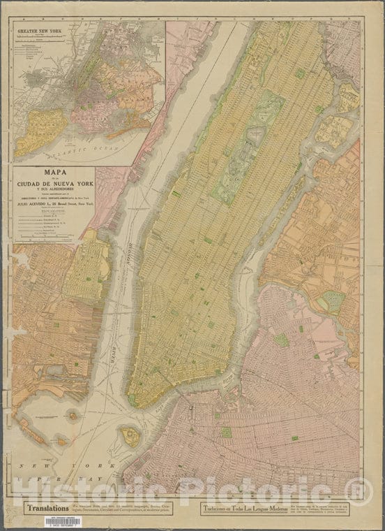 Historic 1907 Map - Mapa De La Ciudad De Nueva York Ysus Alrededores.Of New York City And State - Manhattan