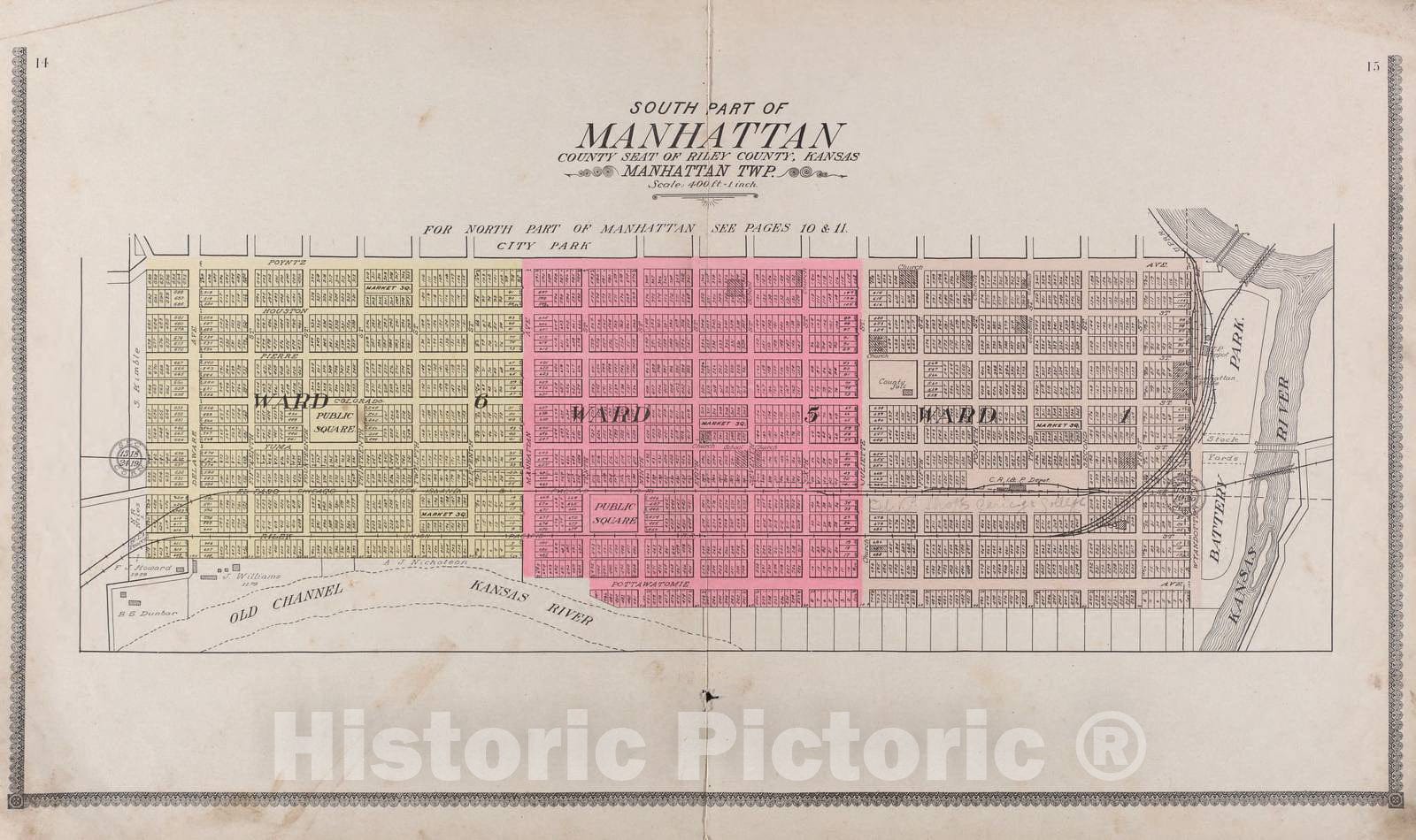 Historic 1909 Map - Standard Atlas of Riley County, Kansas - South Part of Manhattan