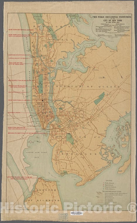 Historic 1911 Map - New York City Free Public Educational Institutions, 1911 ; Prepaof New York City And State - Manhattan - Vintage Wall Art