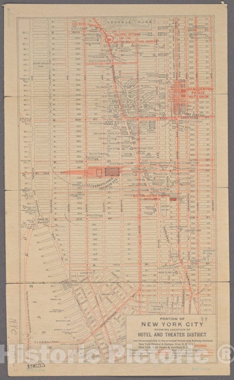 • .Historic 1912 Map - Portion Of New York City Showing Location Of Hotel And Theatre Dof New York City And State - Manhattan - Vintage Wall Art