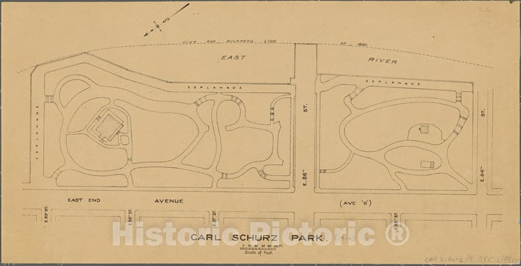Historic 1914 Map - Map Of Carl Schurz Park.Of New York City And State - Manhattan - Vintage Wall Art