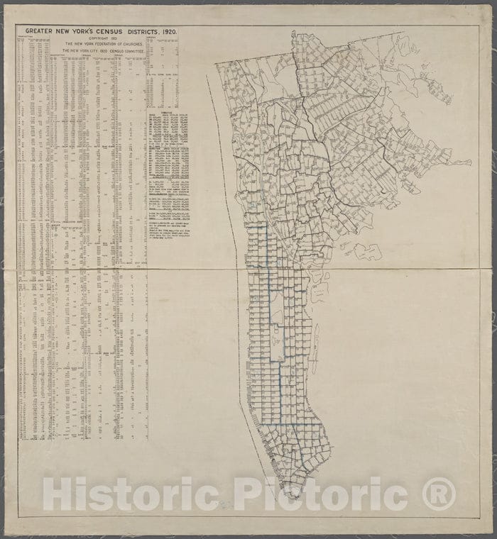 Historic 1920 Map - Greater New York'S Census Districts, 1920 : Compiled From Map Prof New York City And State - Manhattan