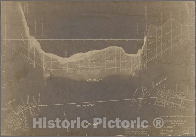 Historic 1922 Map - The Narrows Tunnel: Chart Of Borings.Of New York City And State - Manhattan - Vintage Wall Art
