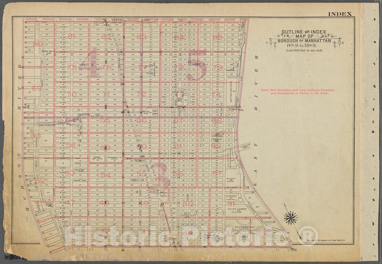 Historic 1955 Map - Outline And Index Map Of Borough Of Manhattan. 14Th St. To 59Th
