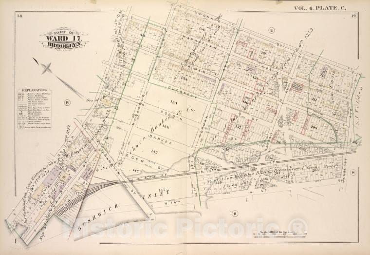 Historic Map - 1880 Brooklyn (New York, N.Y.), Manhattan Ave, Leonard St Van Cott Ave, North 14Th St Franklin St Calyer St, Vintage Wall Art