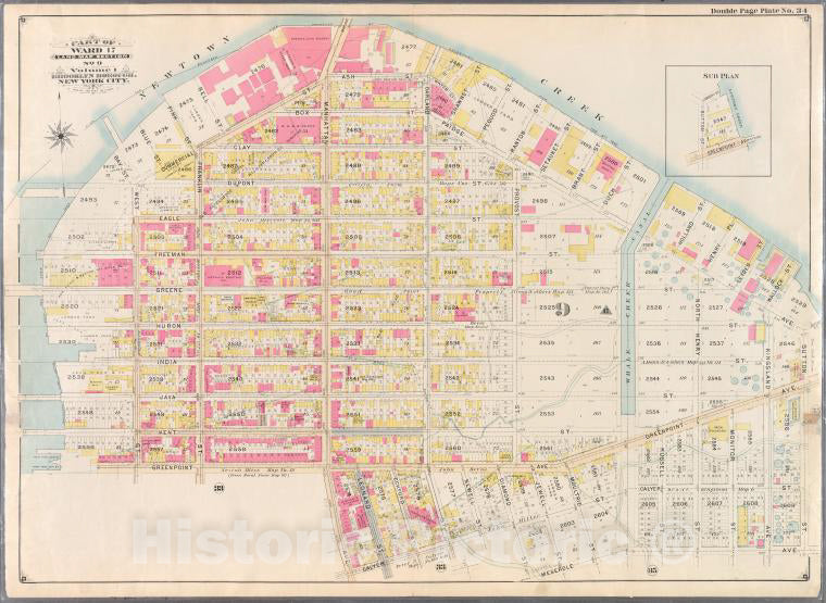 Historic Map - 1898 Brooklyn (New York, N.Y.),(New Town Creek) Commercial, Ash, Oakland, Paidge, Sutton, Meserole, Diamond, Calyer, Manhattan, Greenpoint