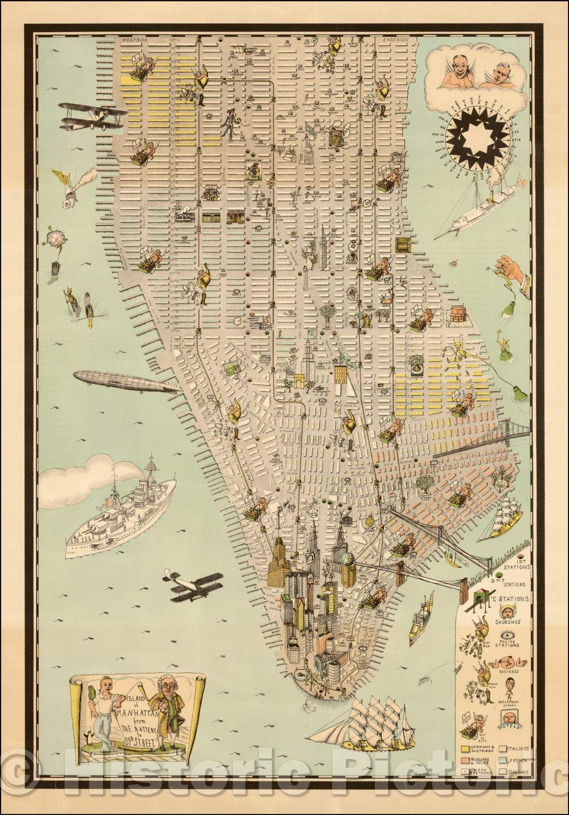 Historic Map - Island of Manhattan from The Battery to 59th Street, 1930, Kaj Klitgaard - Vintage Wall Art