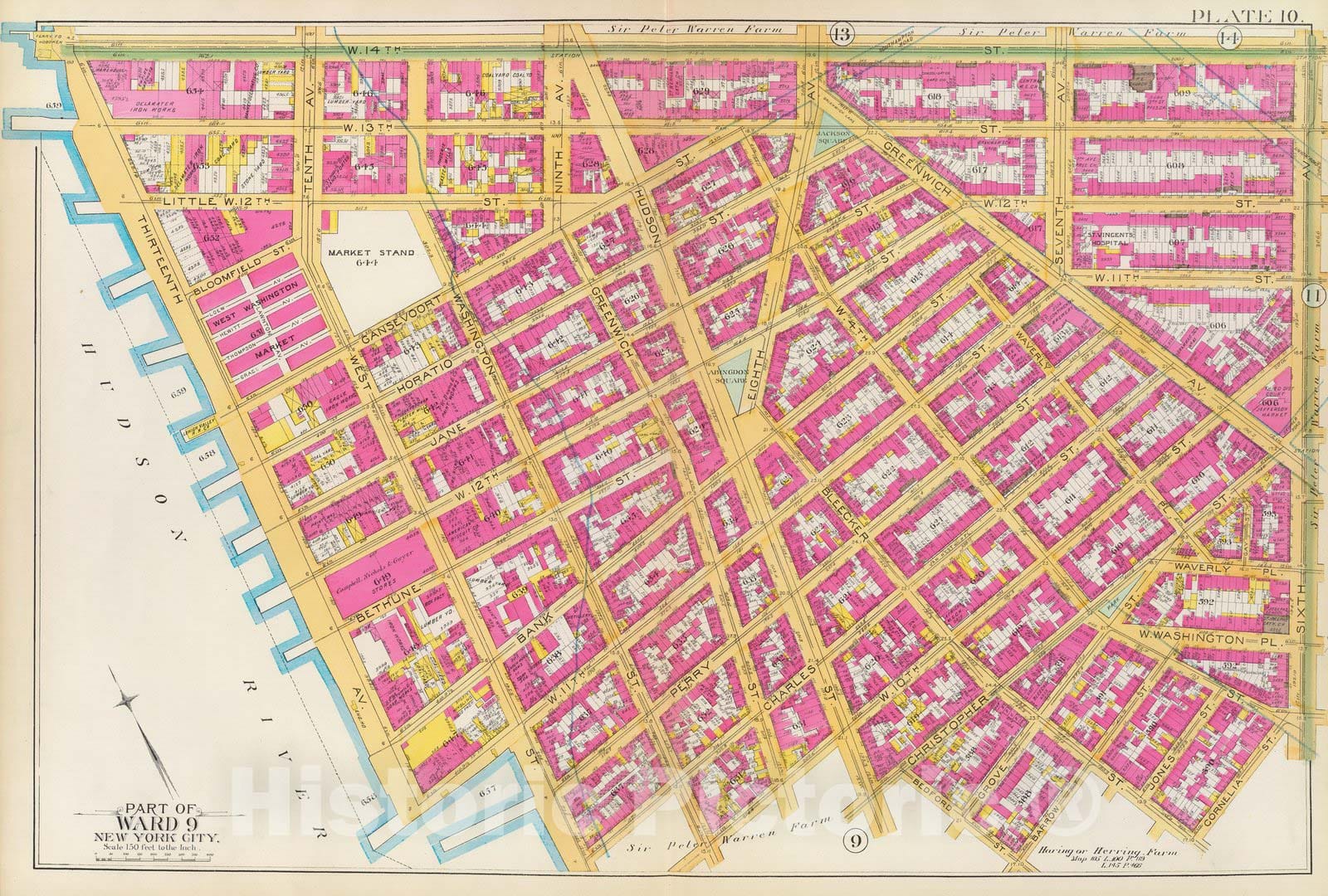 Historic Map : Manhattan Fire Insurance City Atlas Map, Pl. 10: ward 9. 1891 - Vintage Wall Art
