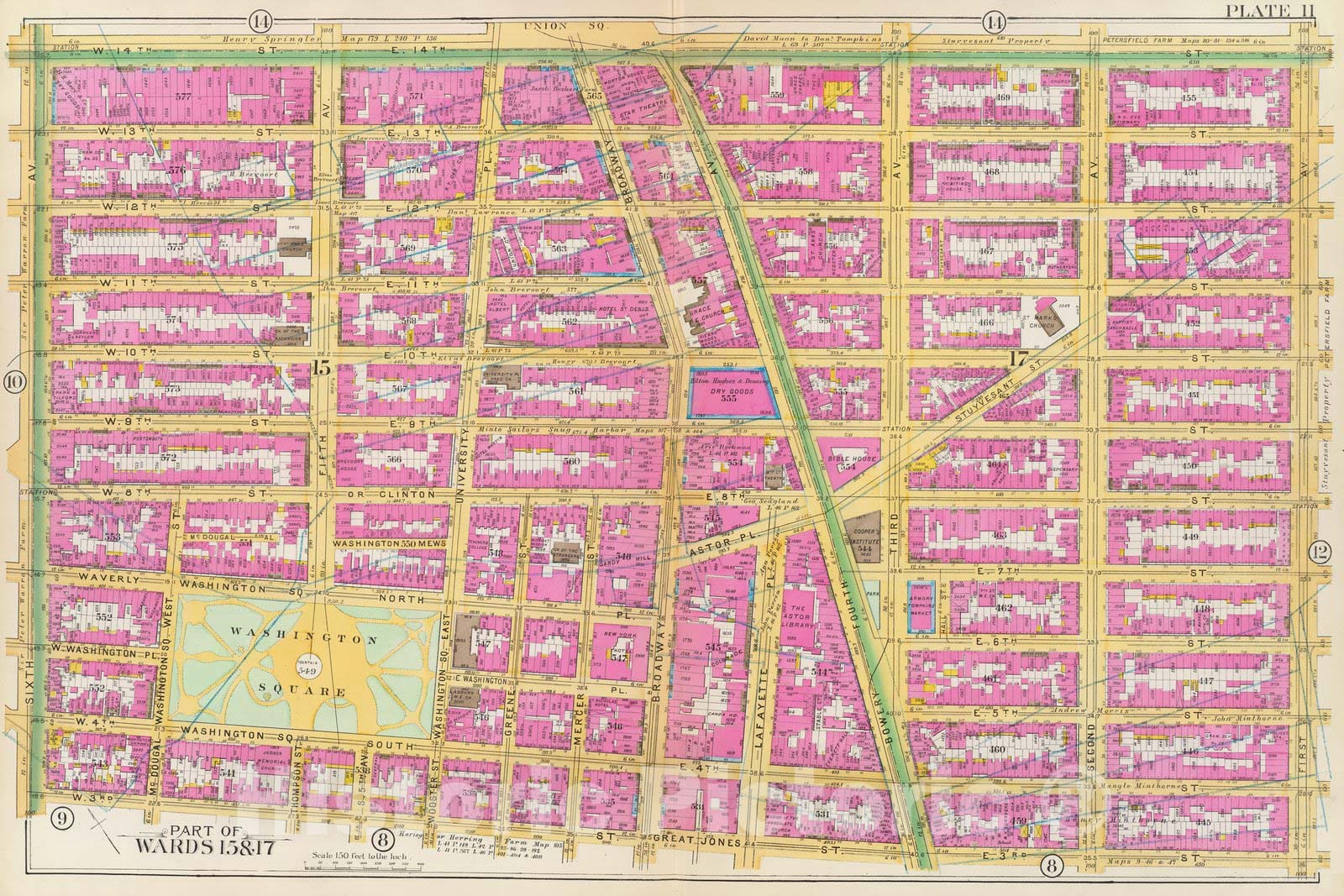 • .Historic Map : Manhattan Fire Insurance City Atlas Map, Pl. 11: wards 15, 17. 1891 - Vintage Wall Art