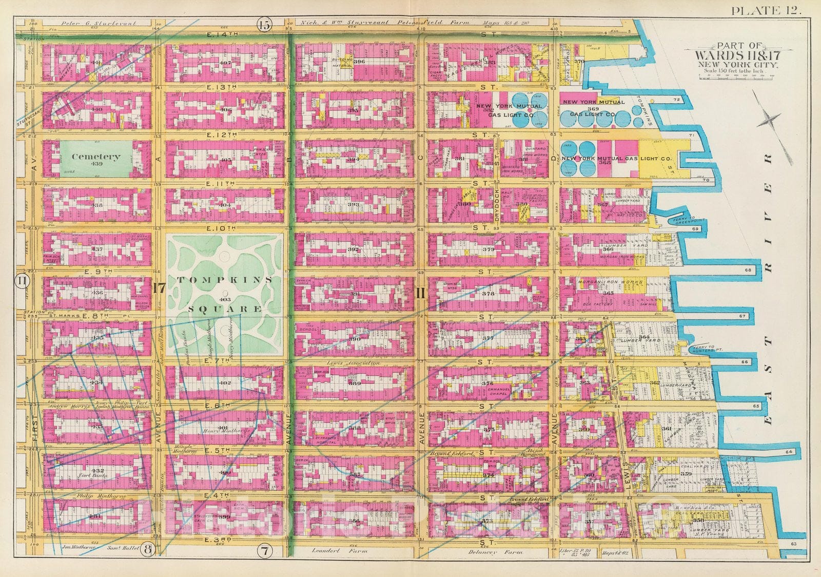 Historic Map : Manhattan Fire Insurance City Atlas Map, Pl. 12: wards 11, 17. 1891 - Vintage Wall Art