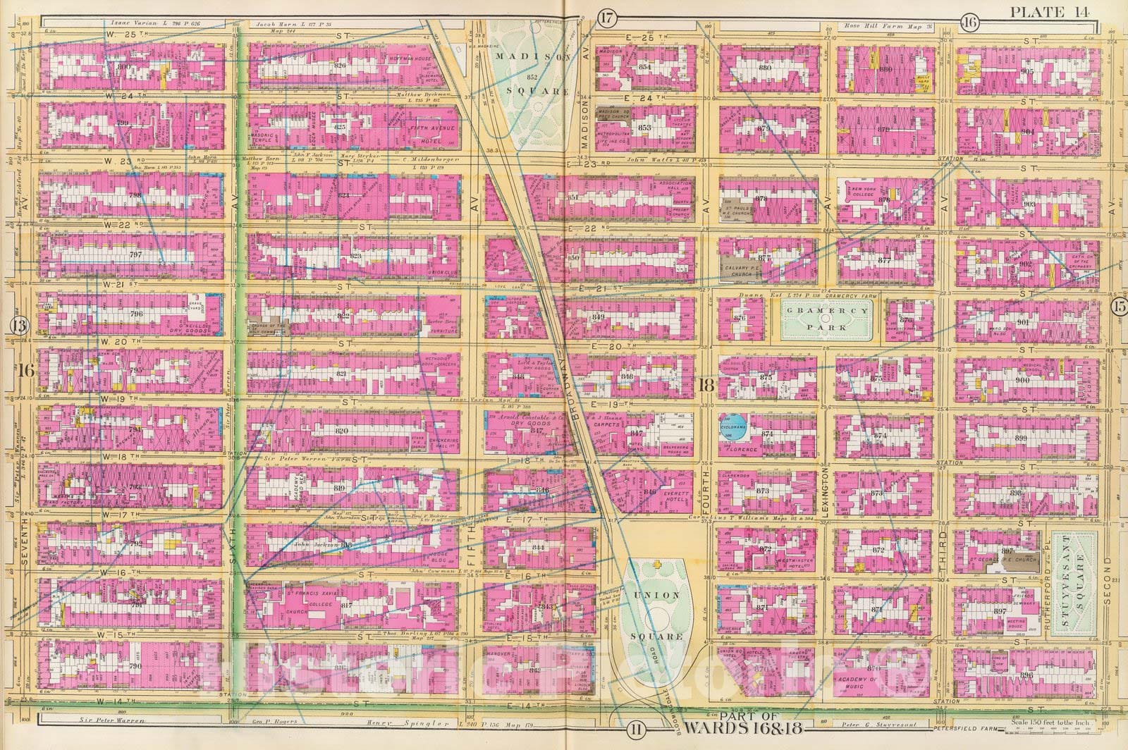 Historic Map : Manhattan Fire Insurance City Atlas Map, Pl. 14: wards 16, 18. 1891 - Vintage Wall Art