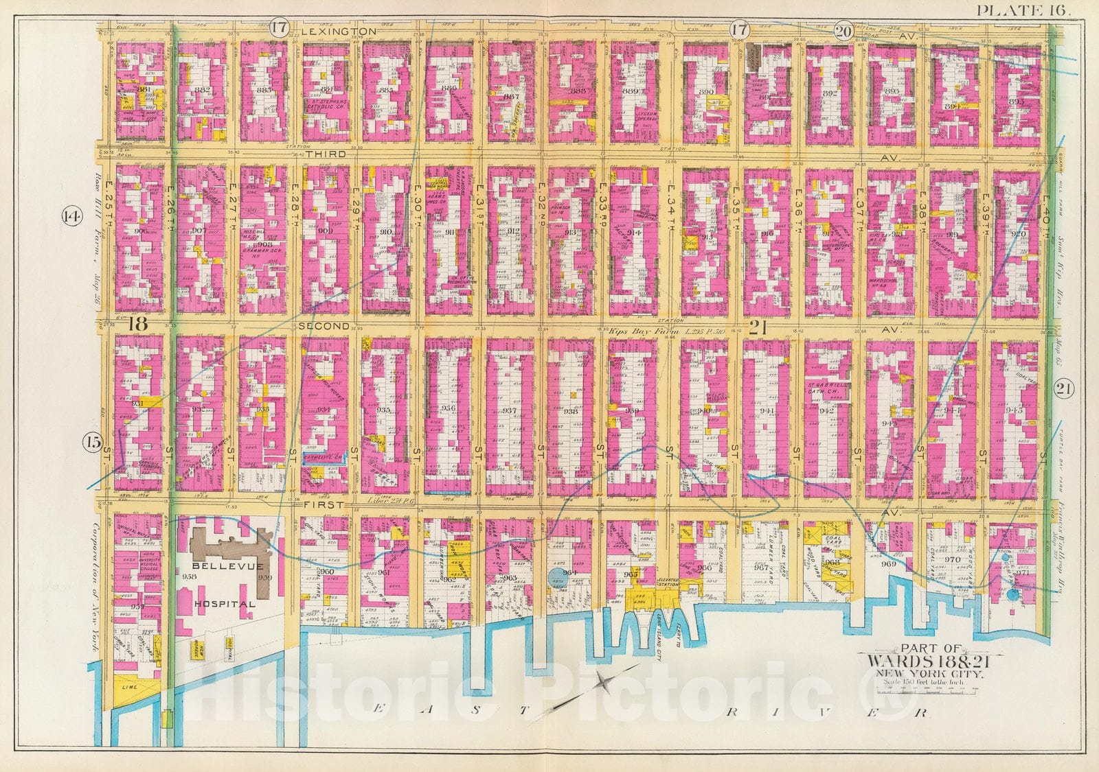 Historic Map : Manhattan Fire Insurance City Atlas Map, Pl. 16: wards 18, 21. 1891 - Vintage Wall Art