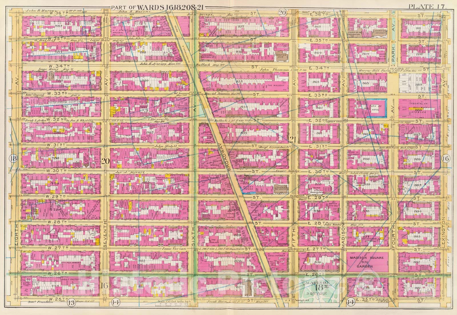 • .Historic Map : Manhattan Fire Insurance City Atlas Map, Pl. 17: wards 16, 18, 20-21. 1891 - Vintage Wall Art