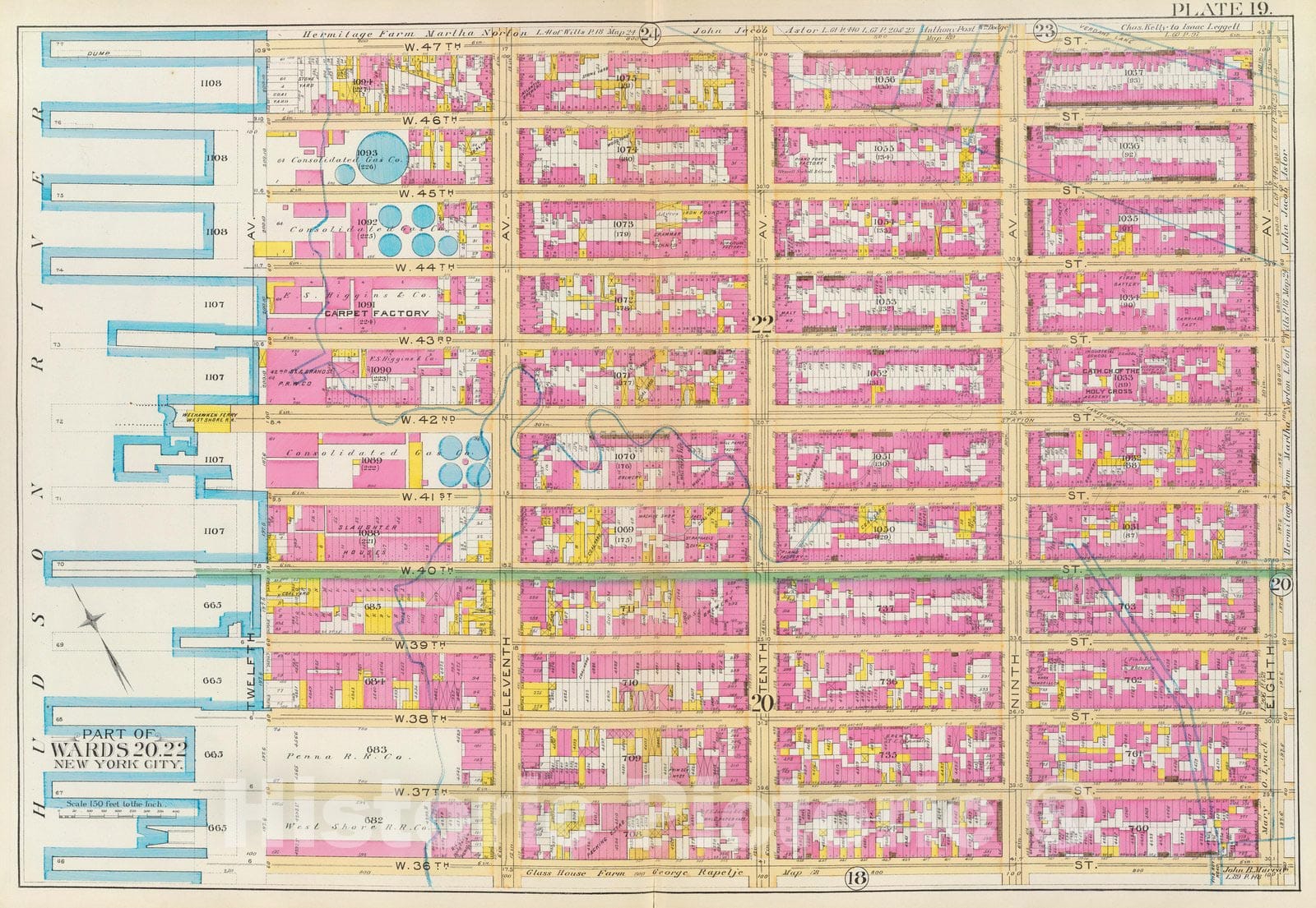 Historic Map : Manhattan Fire Insurance City Atlas Map, Pl. 19: wards 20, 22. 1891 - Vintage Wall Art