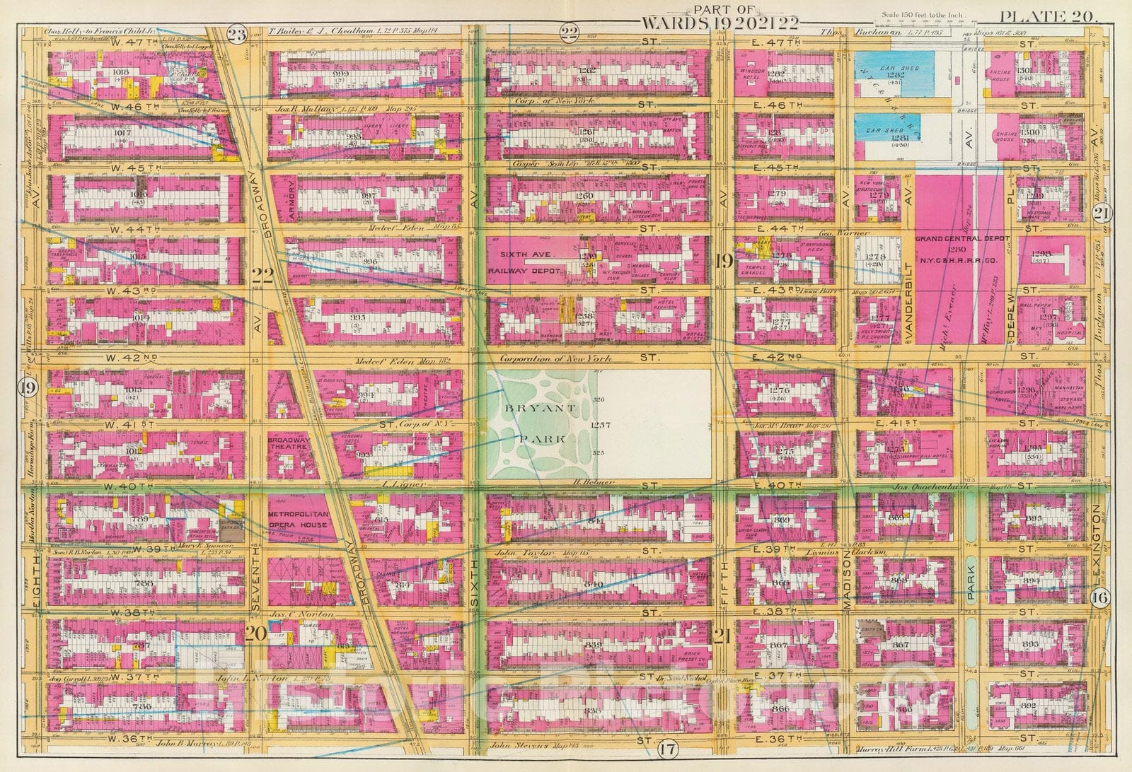 • .Historic Map : Manhattan Fire Insurance City Atlas Map, Pl. 20: wards 19-22. 1891 - Vintage Wall Art