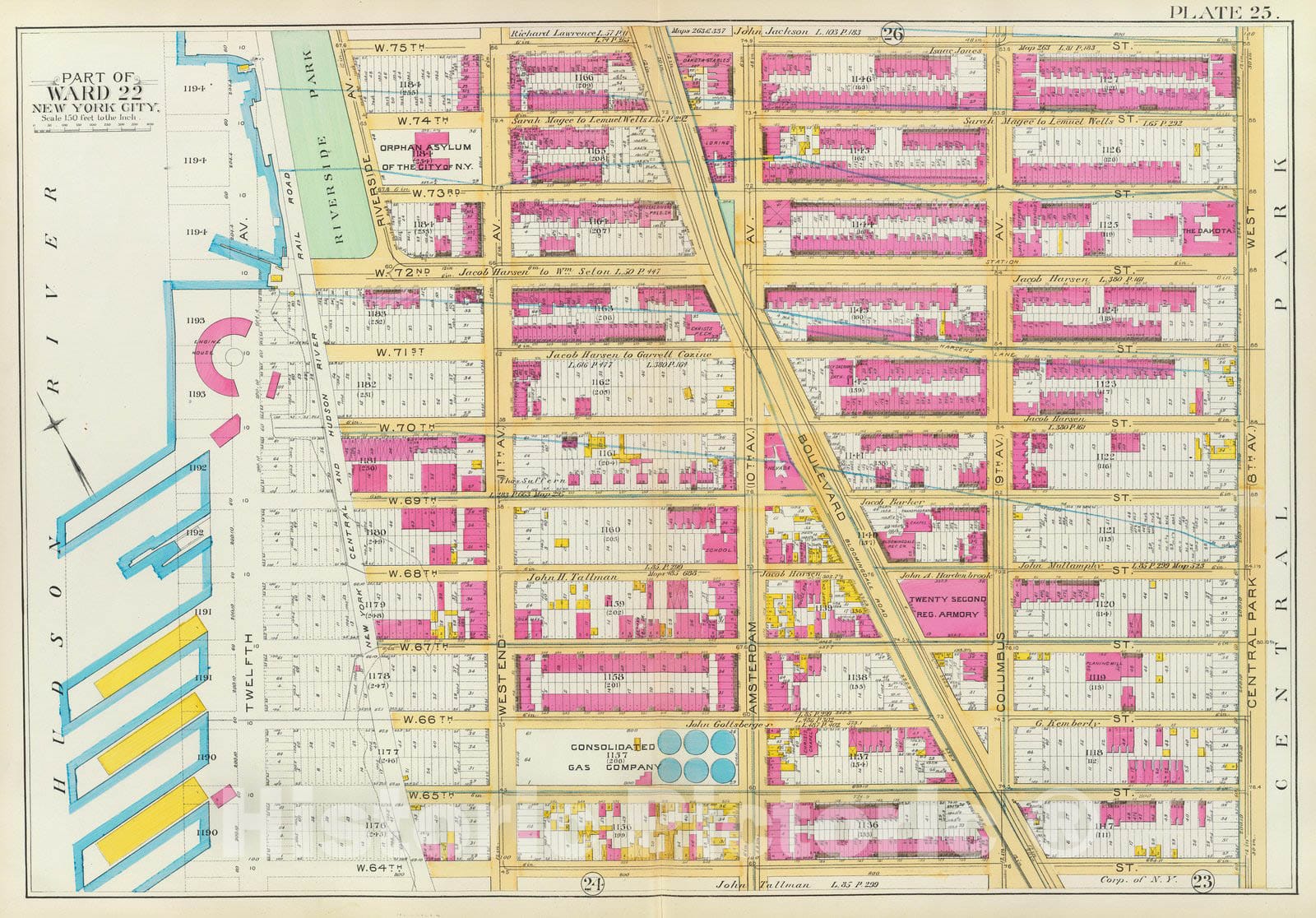 Historic Map : Manhattan Fire Insurance City Atlas Map, Pl. 25: ward 22. 1891 - Vintage Wall Art