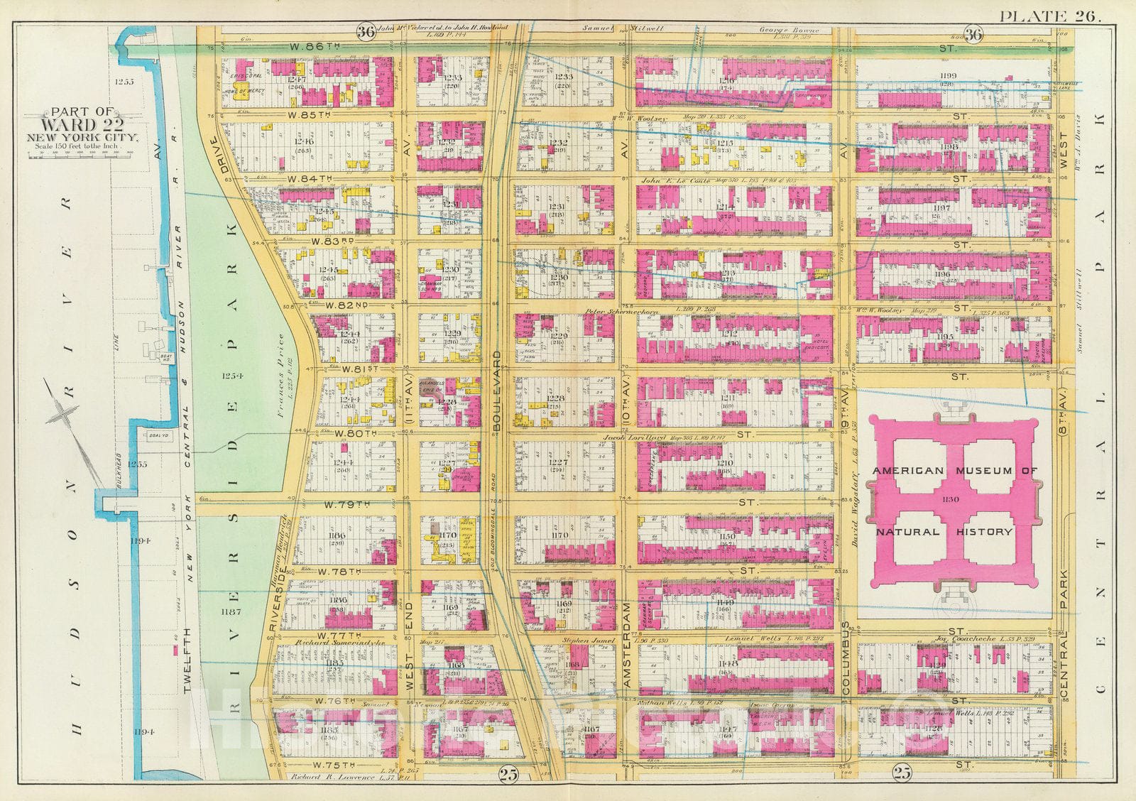 Historic Map : Manhattan Fire Insurance City Atlas Map, Pl. 26: ward 22. 1891 - Vintage Wall Art