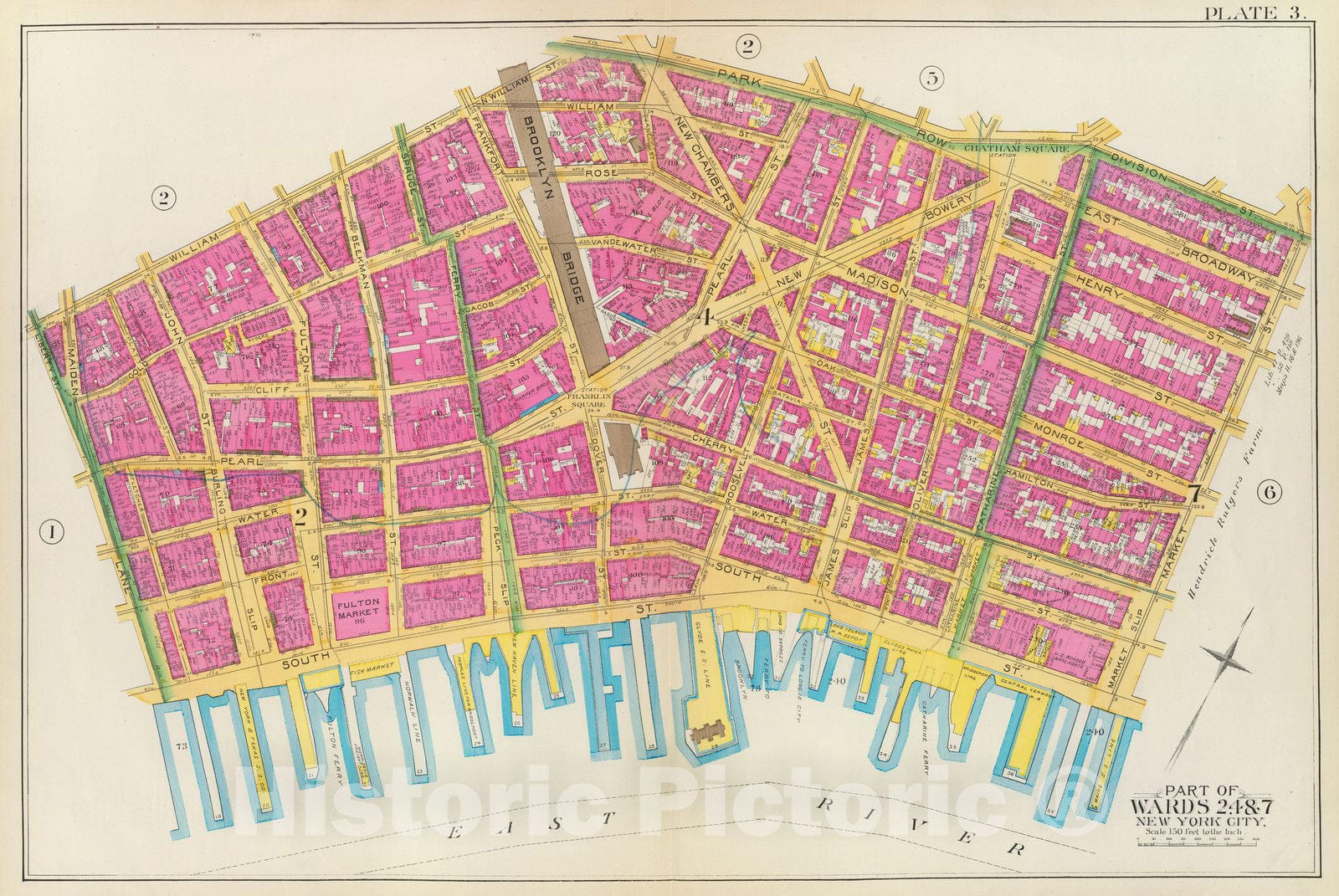 Historic Map : Manhattan Fire Insurance City Atlas Map, Pl. 3: wards 2, 4, 7. 1891 - Vintage Wall Art