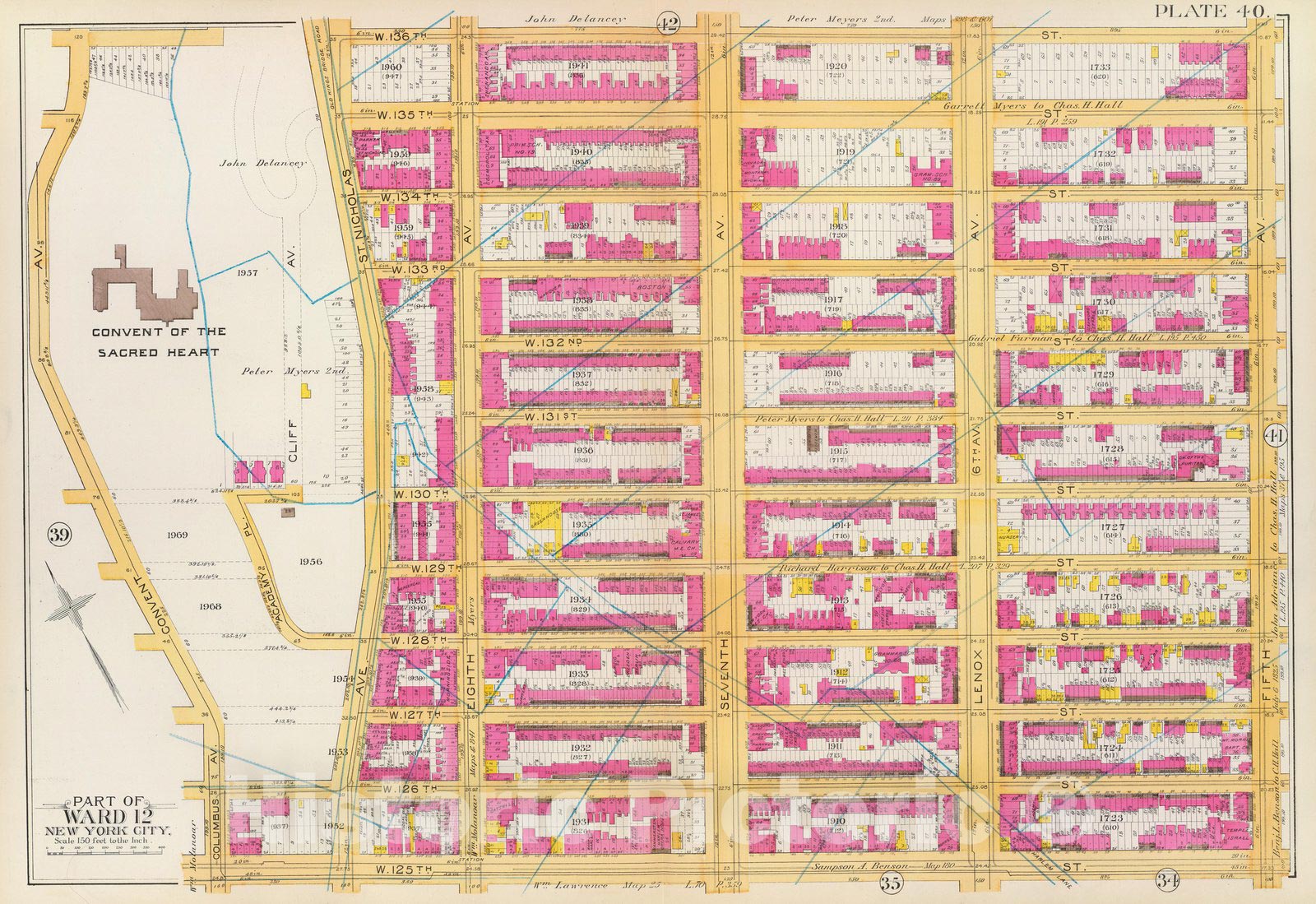 Historic Map : Manhattan Fire Insurance City Atlas Map, Pl. 40: ward 12. 1891 - Vintage Wall Art