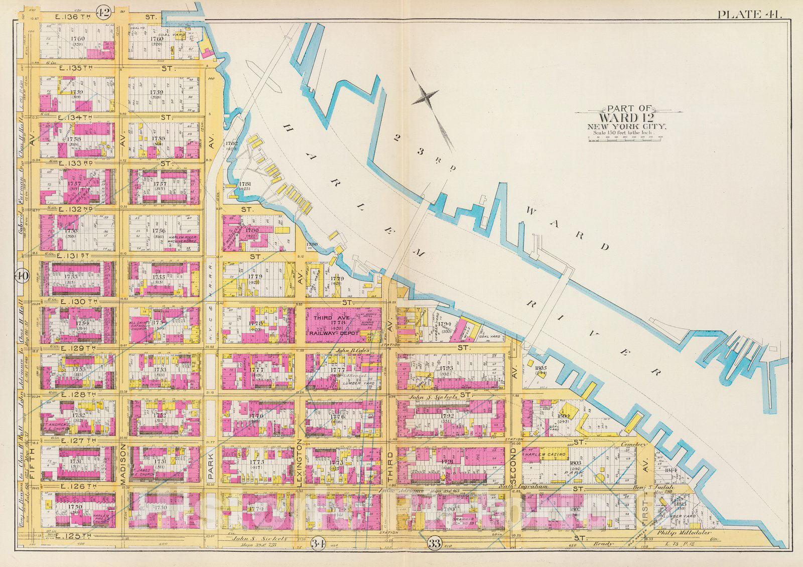 Historic Map : Manhattan Fire Insurance City Atlas Map, Pl. 41: ward 12. 1891 - Vintage Wall Art