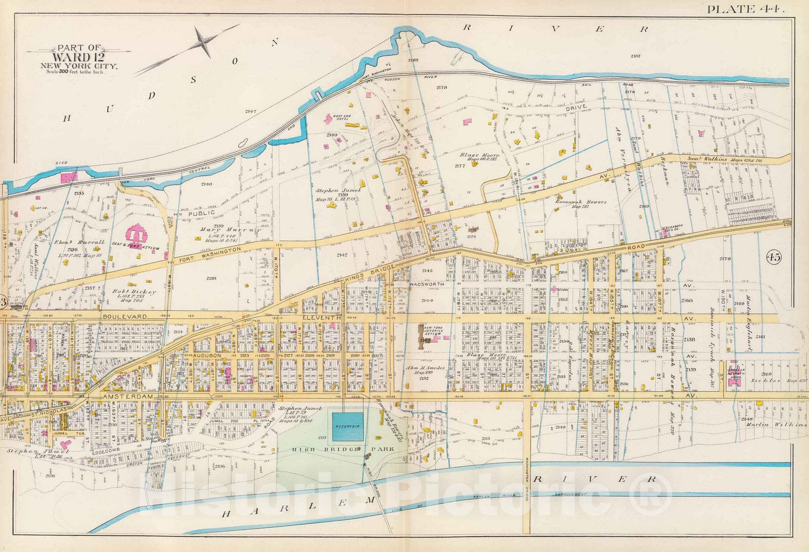 • .Historic Map : Manhattan Fire Insurance City Atlas Map, Pl. 44: ward 12. 1891 - Vintage Wall Art