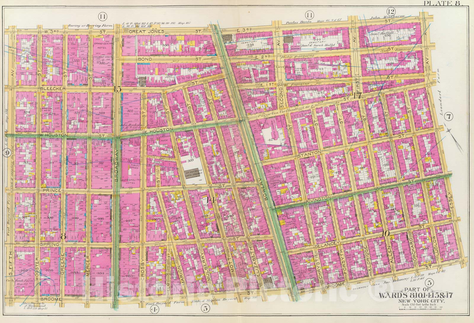 Historic Map : Manhattan Fire Insurance City Atlas Map, Pl. 8: wards 8, 10, 14-15, 17. 1891 - Vintage Wall Art