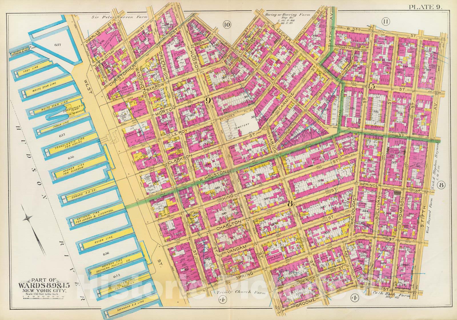 Historic Map : Manhattan Fire Insurance City Atlas Map, Pl. 9: wards 8-9 & 15. 1891 - Vintage Wall Art