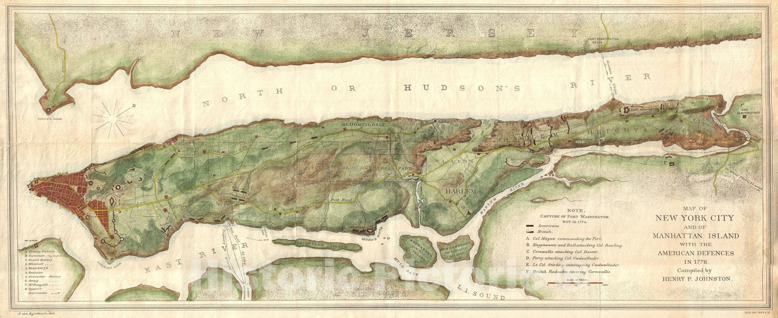 Historic Map : New York City "Manhattan Island" During The Revolutionary War, Bien and Johnson, 1878, Vintage Wall Art
