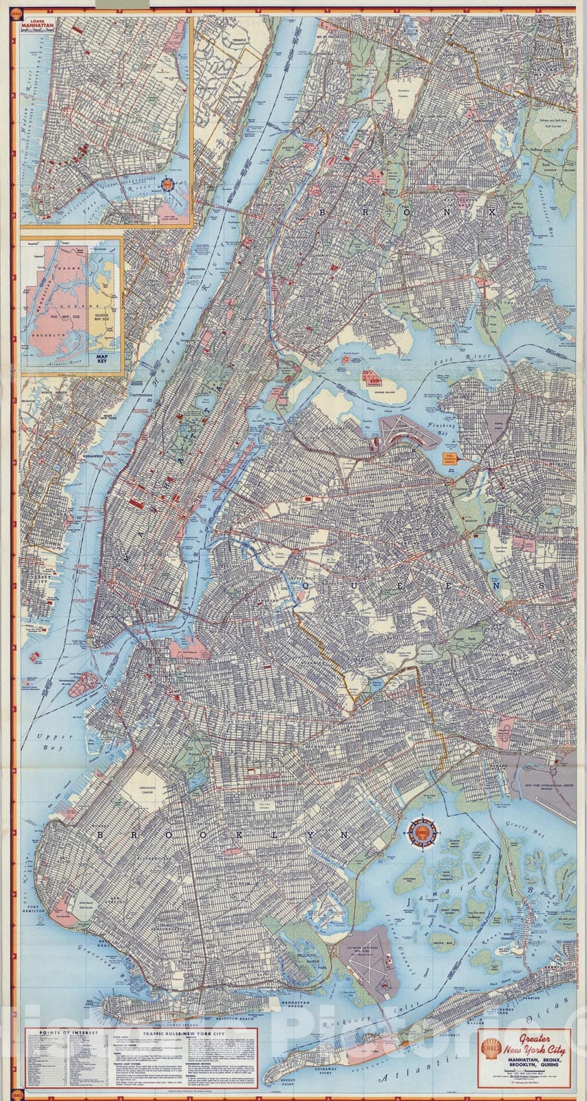 Historic Map : Shell Greater New York City (Eastern Section). To and Through Manhattan., 1956, Vintage Wall Art
