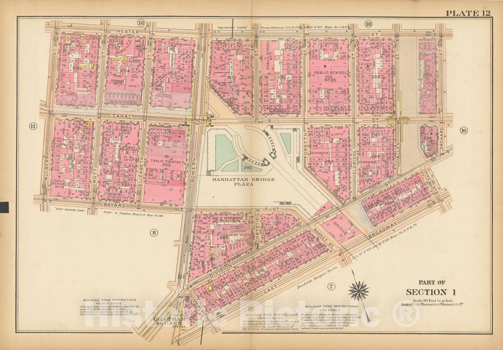 Historic Map : Atlas City of New York, Borough of Manhattan, Vol 1, Batery to 14th St 1922 - 1935 Plate 012 , Vintage Wall Art
