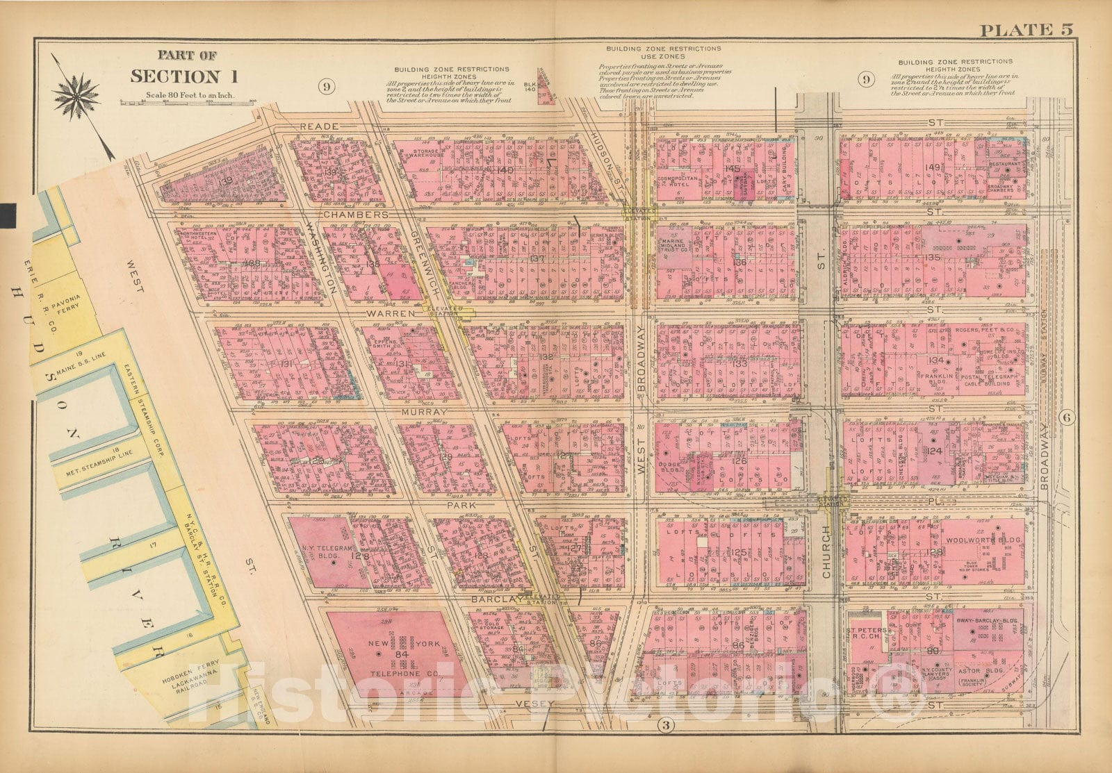 Historic Map : Atlas City of New York, Borough of Manhattan, Vol 1, Batery to 14th St 1922 - 1935 Plate 005 , Vintage Wall Art