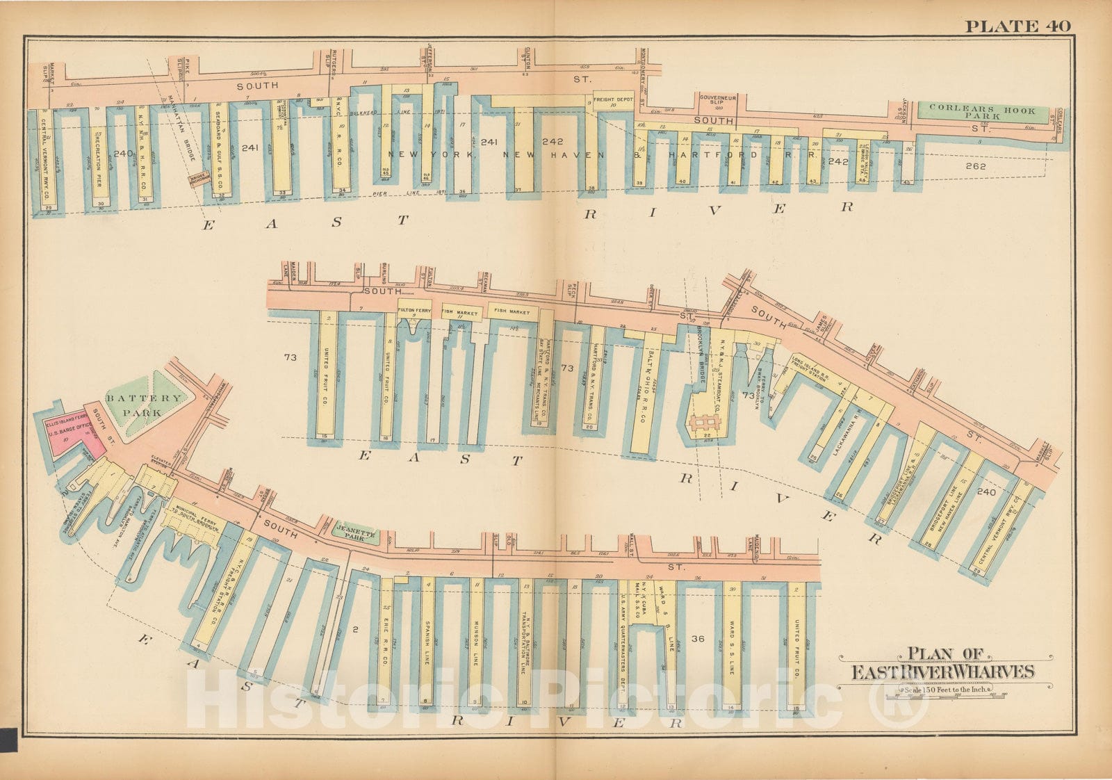• .Historic Map : Atlas City of New York, Borough of Manhattan, Vol 1, Batery to 14th St 1922 - 1935 Plate 040 , Vintage Wall Art