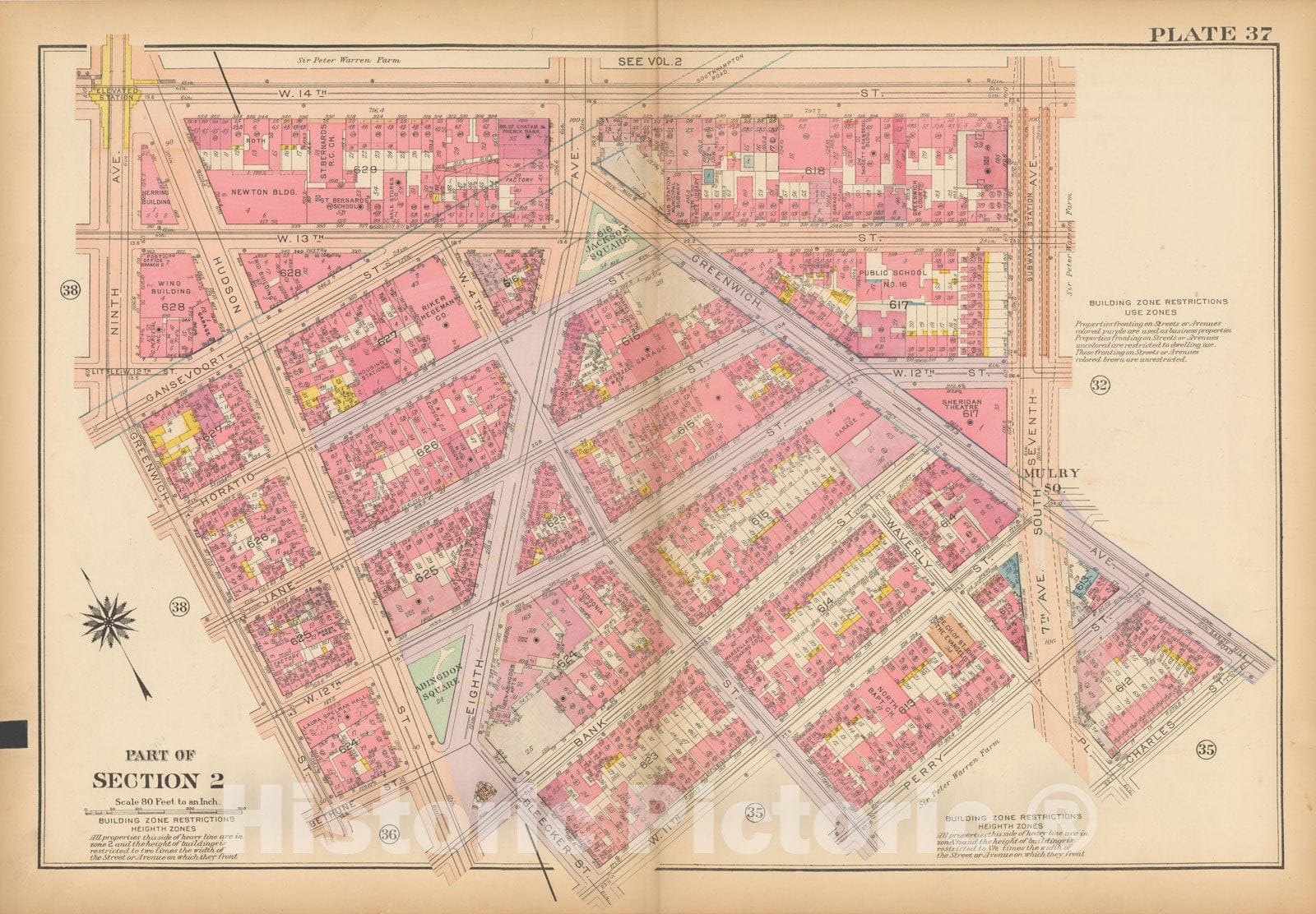 Historic Map : Atlas City of New York, Borough of Manhattan, Vol 1, Batery to 14th St 1922 - 1935 Plate 037 , Vintage Wall Art