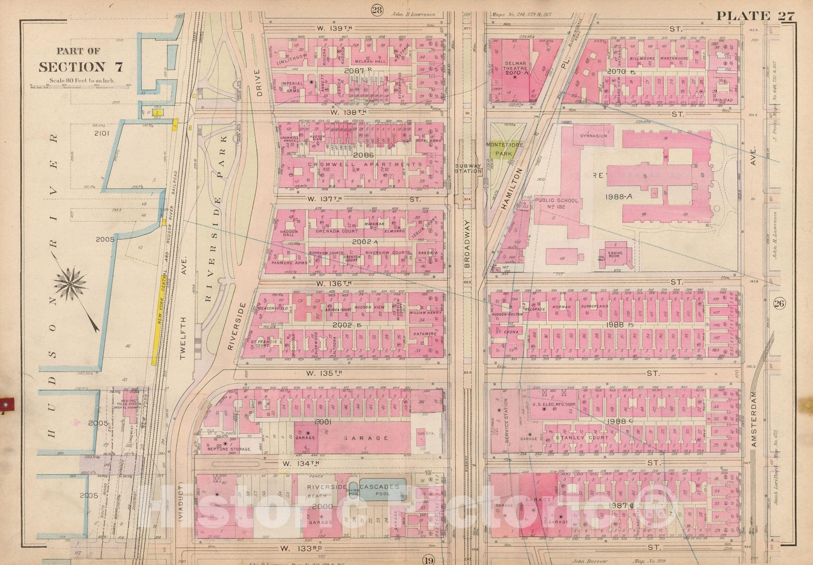 Historic Map : Atlas City of New York, Borough of Manhattan, Volume 4, 110th St to 145th St, Manhattan 1914 Plate 027 , Vintage Wall Art