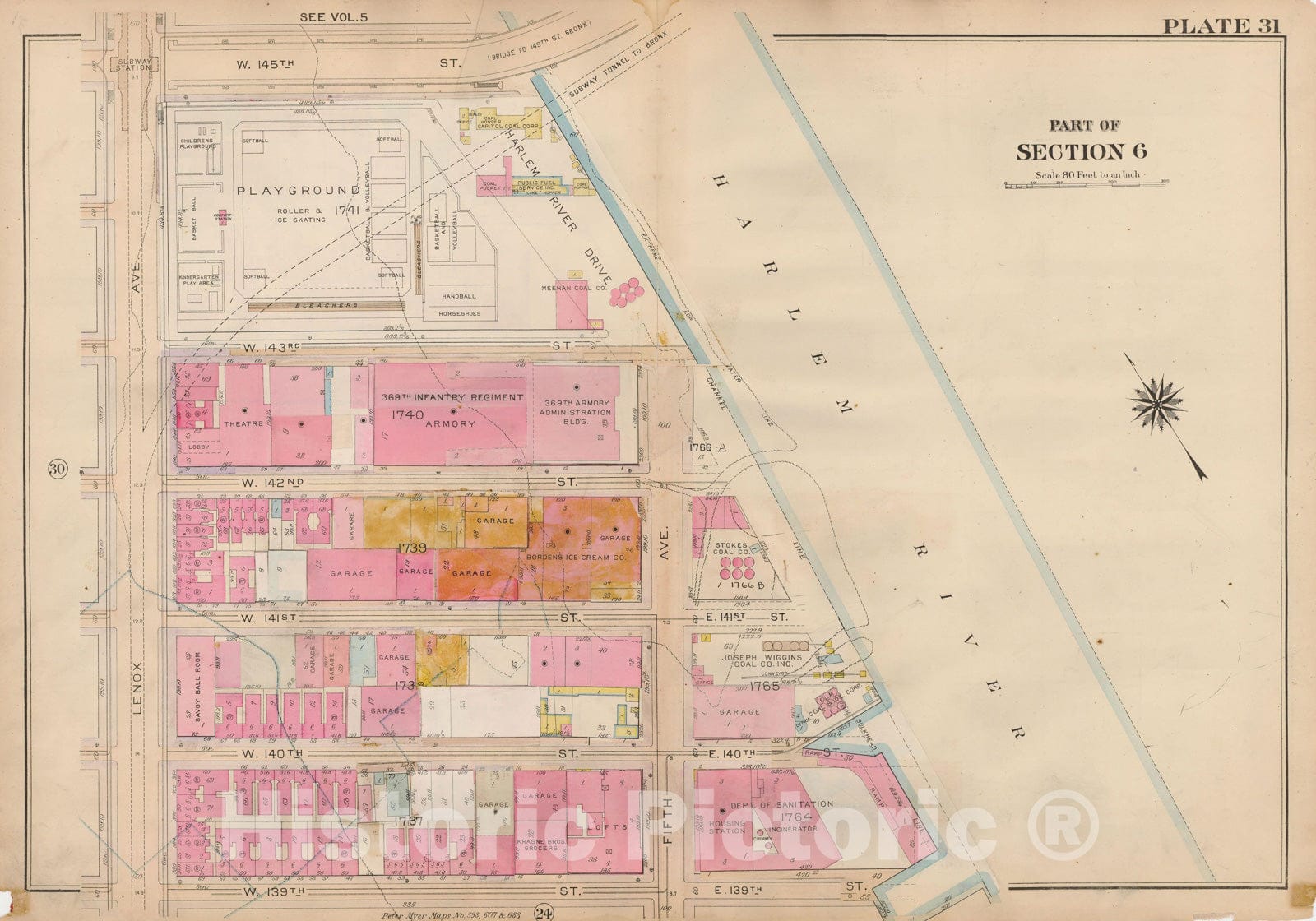 Historic Map : Atlas City of New York, Borough of Manhattan, Volume 4, 110th St to 145th St, Manhattan 1914 Plate 031 , Vintage Wall Art