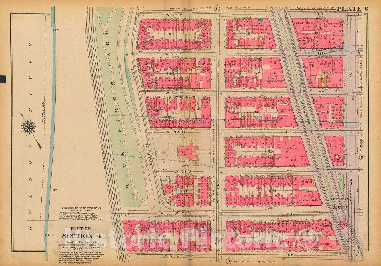 Historic Map : Atlas City of New York, Borough of Manhattan, Volume 3, 59th St to 110th St, Manhattan 1921 Plate 006 , Vintage Wall Art