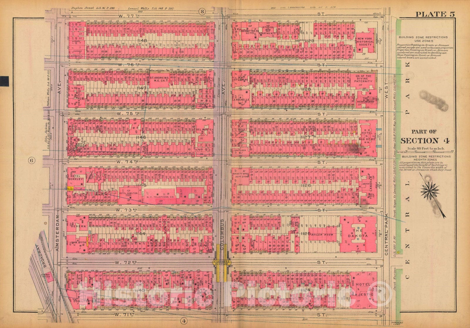 Historic Map : Atlas City of New York, Borough of Manhattan, Volume 3, 59th St to 110th St, Manhattan 1921 Plate 005 , Vintage Wall Art