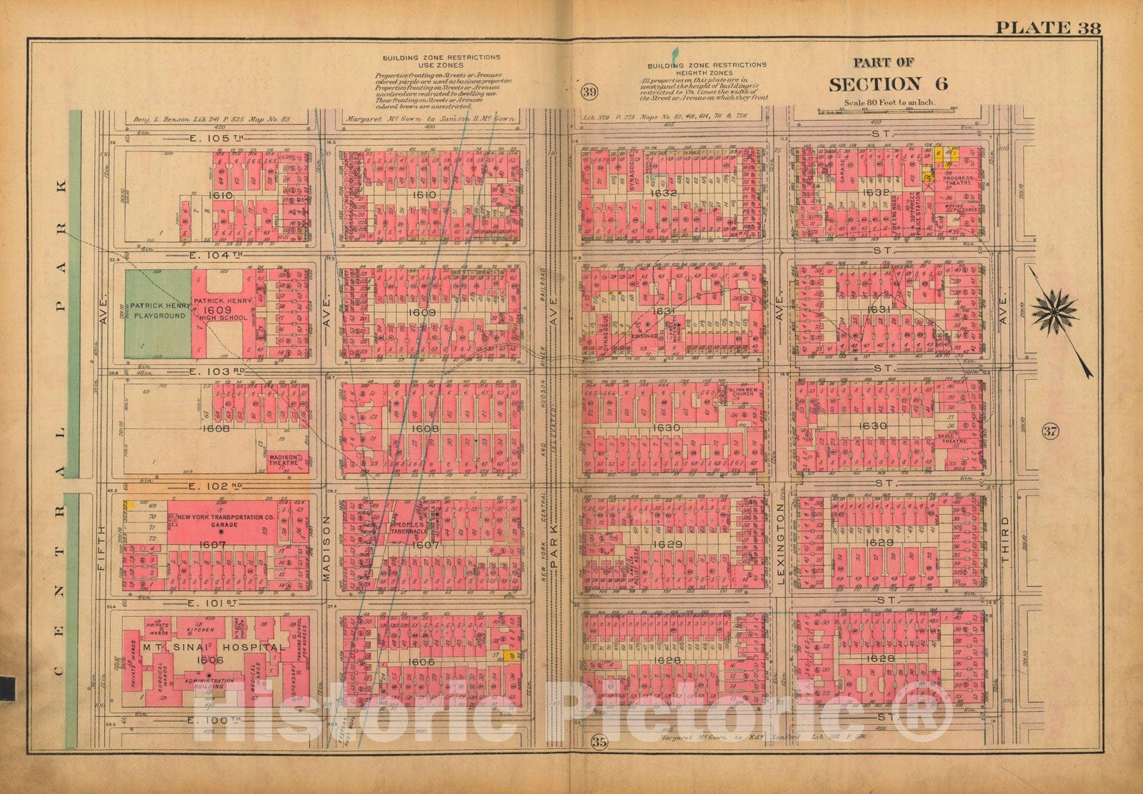 Historic Map : Atlas City of New York, Borough of Manhattan, Volume 3, 59th St to 110th St, Manhattan 1921 Plate 038 , Vintage Wall Art