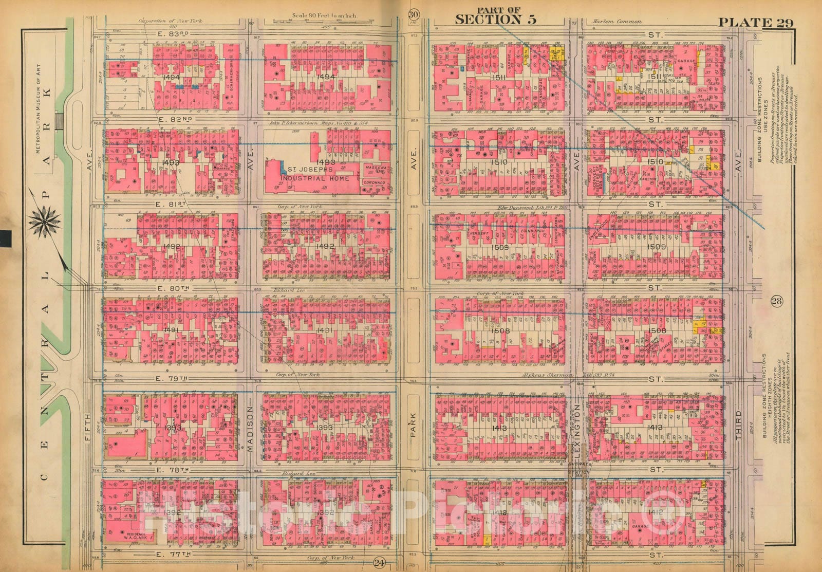 • .Historic Map : Atlas City of New York, Borough of Manhattan, Volume 3, 59th St to 110th St, Manhattan 1921 Plate 029 , Vintage Wall Art