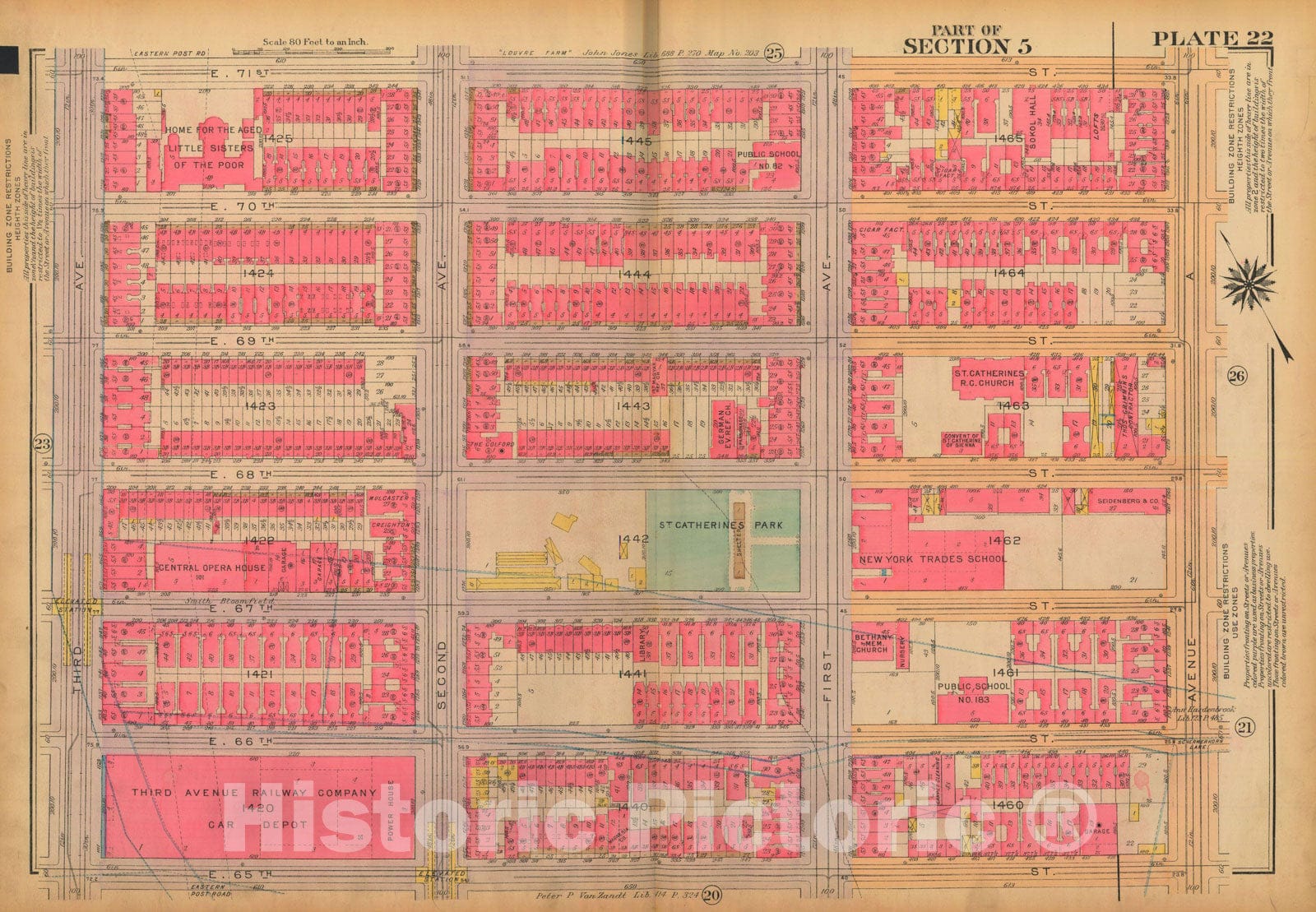 • .Historic Map : Atlas City of New York, Borough of Manhattan, Volume 3, 59th St to 110th St, Manhattan 1921 Plate 022 , Vintage Wall Art