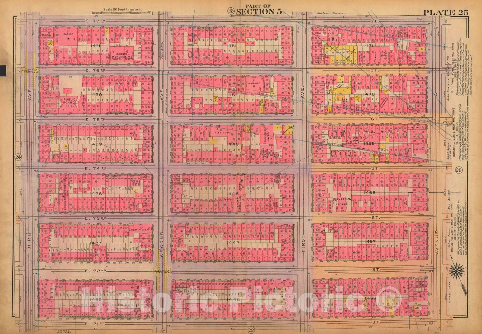 Historic Map : Atlas City of New York, Borough of Manhattan, Volume 3, 59th St to 110th St, Manhattan 1921 Plate 025 , Vintage Wall Art