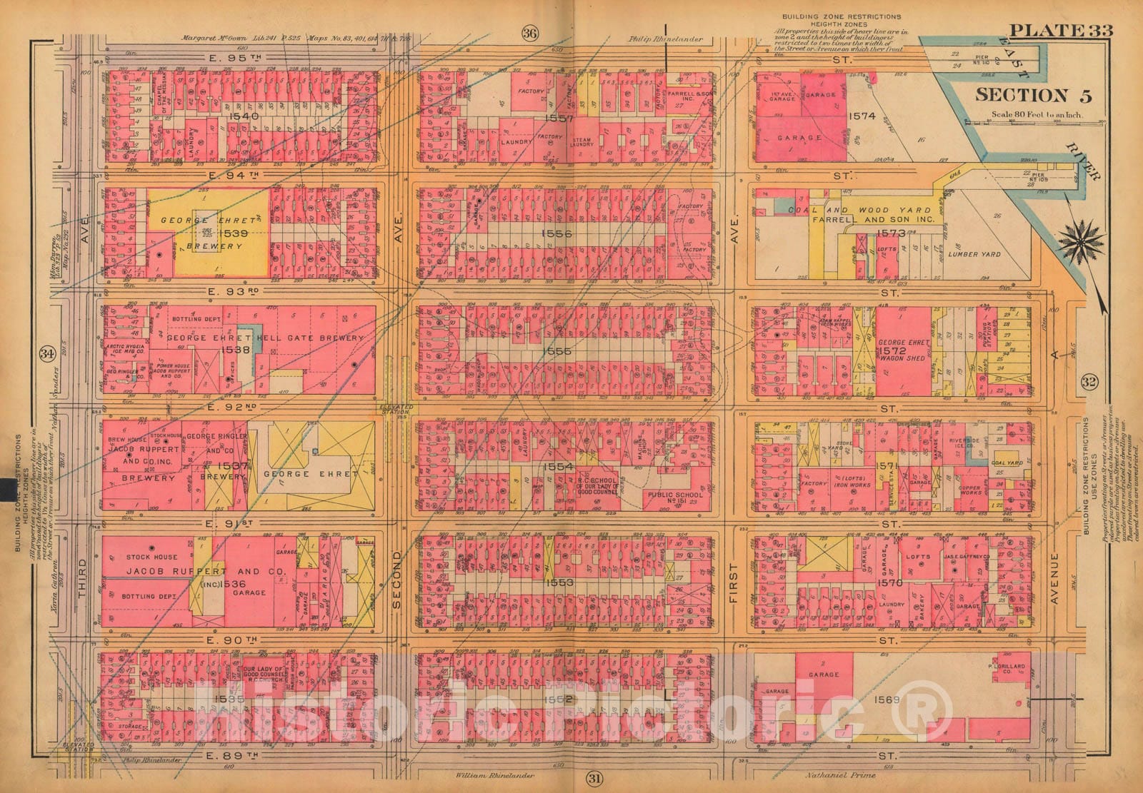Historic Map : Atlas City of New York, Borough of Manhattan, Volume 3, 59th St to 110th St, Manhattan 1921 Plate 033 , Vintage Wall Art