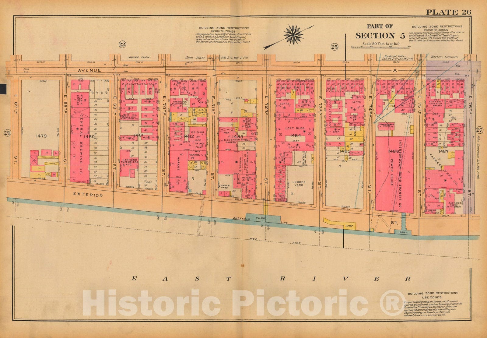 Historic Map : Atlas City of New York, Borough of Manhattan, Volume 3, 59th St to 110th St, Manhattan 1921 Plate 026 , Vintage Wall Art