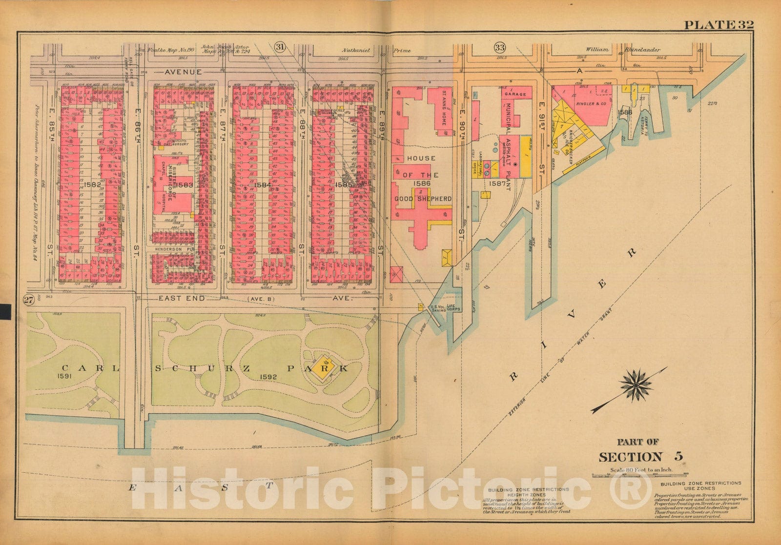 • .Historic Map : Atlas City of New York, Borough of Manhattan, Volume 3, 59th St to 110th St, Manhattan 1921 Plate 032 , Vintage Wall Art