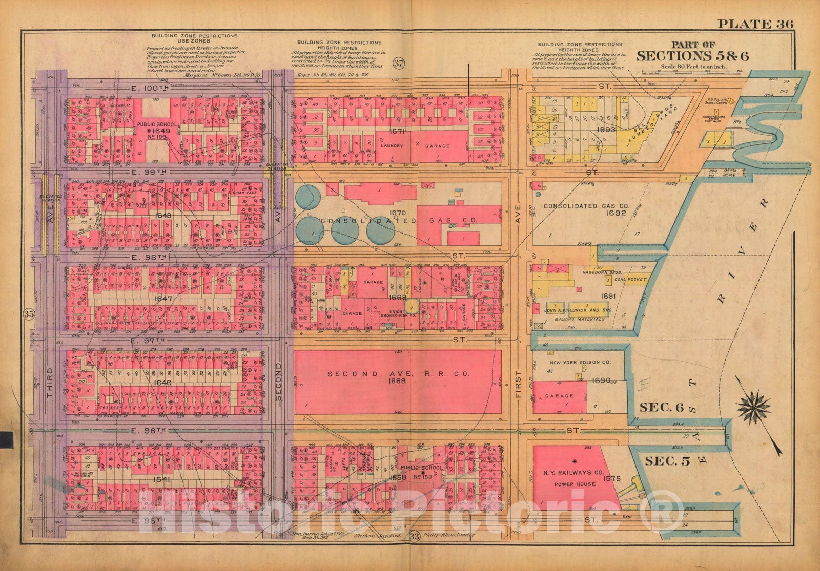 Historic Map : Atlas City of New York, Borough of Manhattan, Volume 3, 59th St to 110th St, Manhattan 1921 Plate 036 , Vintage Wall Art