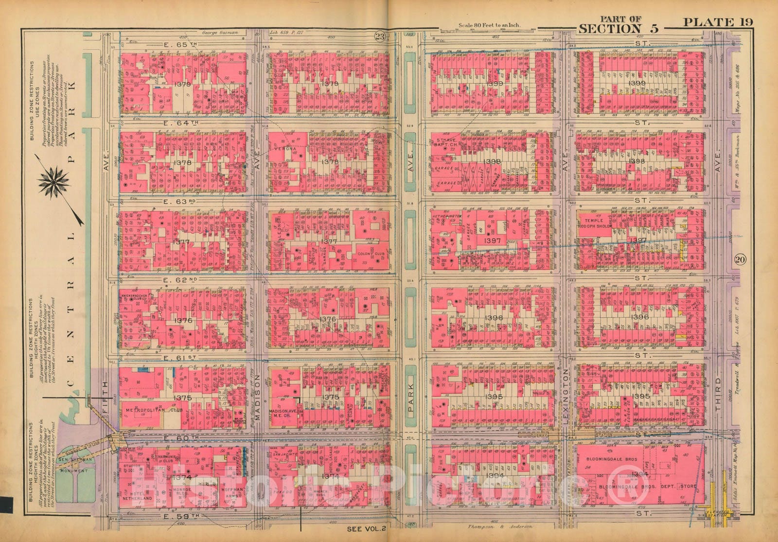 Historic Map : Atlas City of New York, Borough of Manhattan, Volume 3, 59th St to 110th St, Manhattan 1921 Plate 019 , Vintage Wall Art