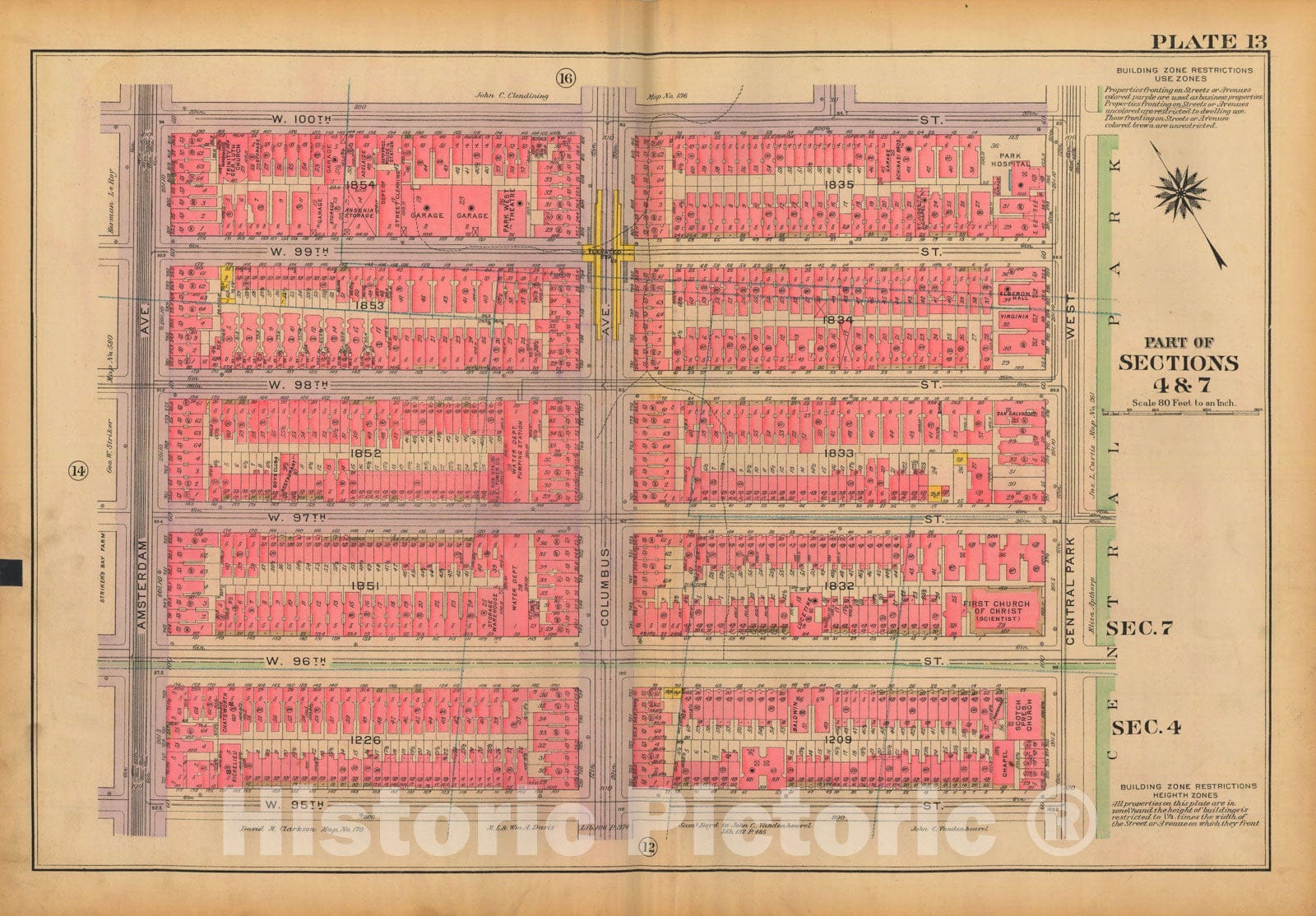 Historic Map : Atlas City of New York, Borough of Manhattan, Volume 3, 59th St to 110th St, Manhattan 1921 Plate 013 , Vintage Wall Art