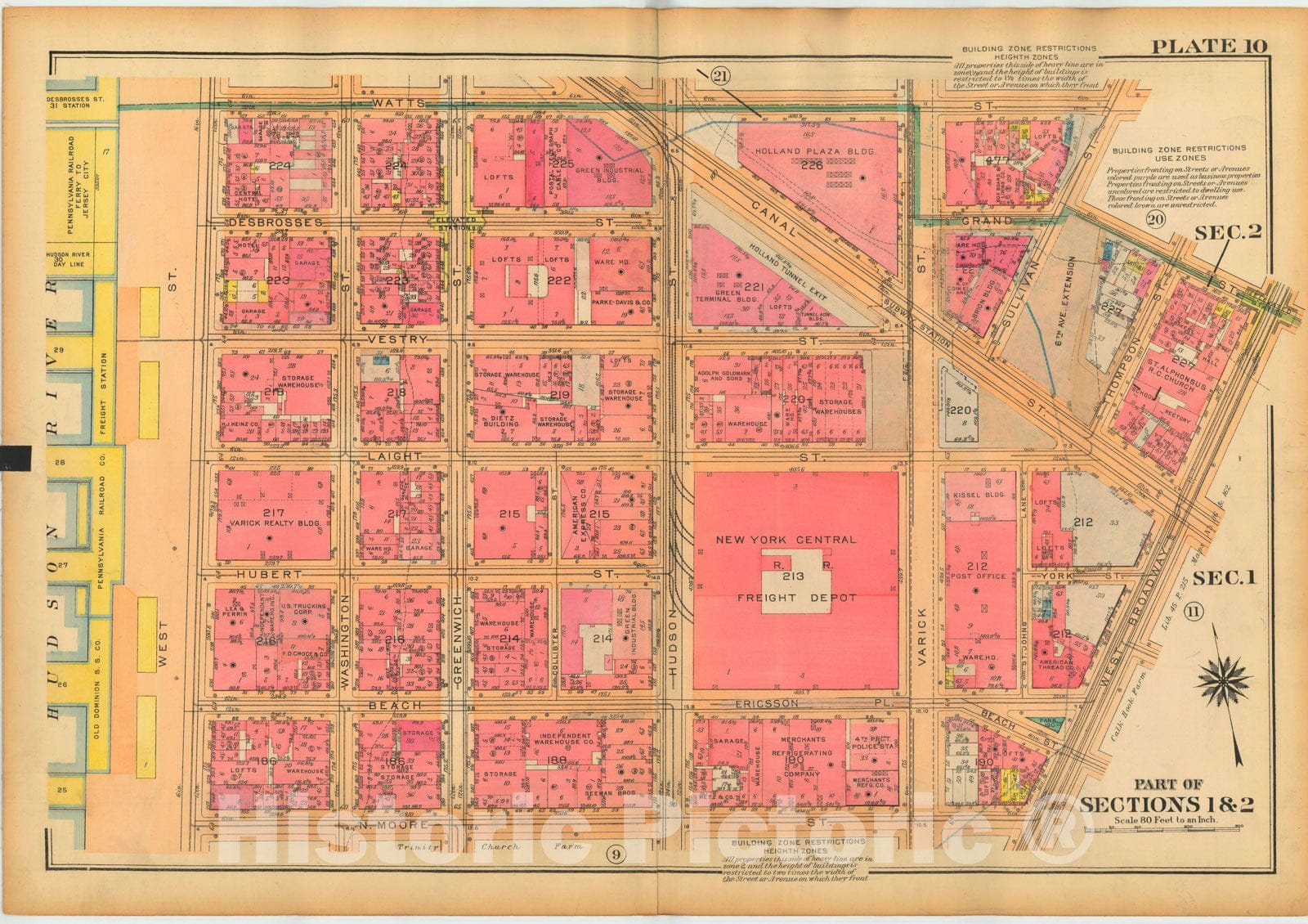 • Historic Map : Atlas City of New York, Borough of Manhattan, Volume One, Battery to 14th Street, Manhattan 1922 Plate 010 , Vintage Wall Art